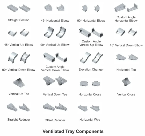 Include cable tray in Ladder style, Solid bottom, Perforated Bottom and Wire basket.