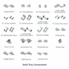 Rich components catalog populated with the most commonly used industrial tray parts designed from 16 basic component types