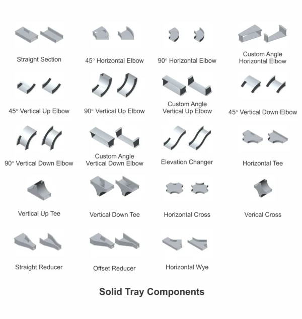 Include cable trays in Ladder style, Solid bottom, and Perforated Bottom